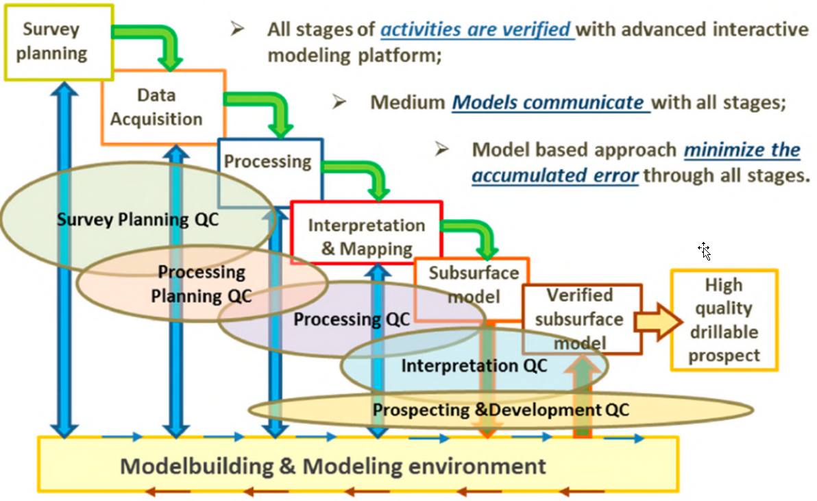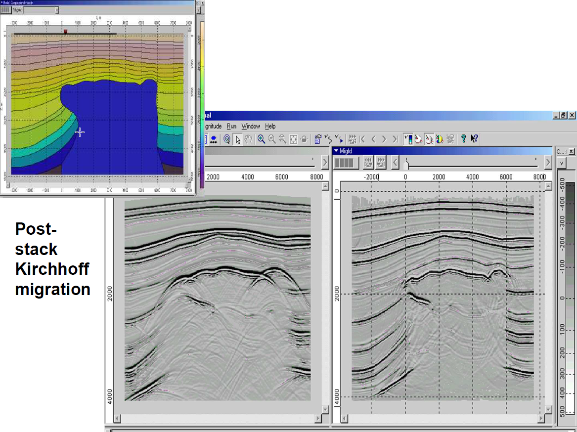 In seismic data processing workflow, seismic data loading is performed (after some upgrades and improvements before processing procedures), and seismic images are generated to reveal geological boundaries and interfaces at different time and depths. In the processing workflow planning of seismic data, Tesseral’s full wave modeling helps you in the quality control process by assesing the proper processing sequences and parameters to apply to your companies seismic data. (Post-Stack interpretation level)