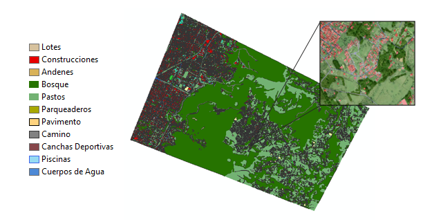The following image shows the characteristics of the soil extracted in an area of 24km2. located in the northwest of Bogota, and the result was 95% accurate, in only 2 hours of processing.